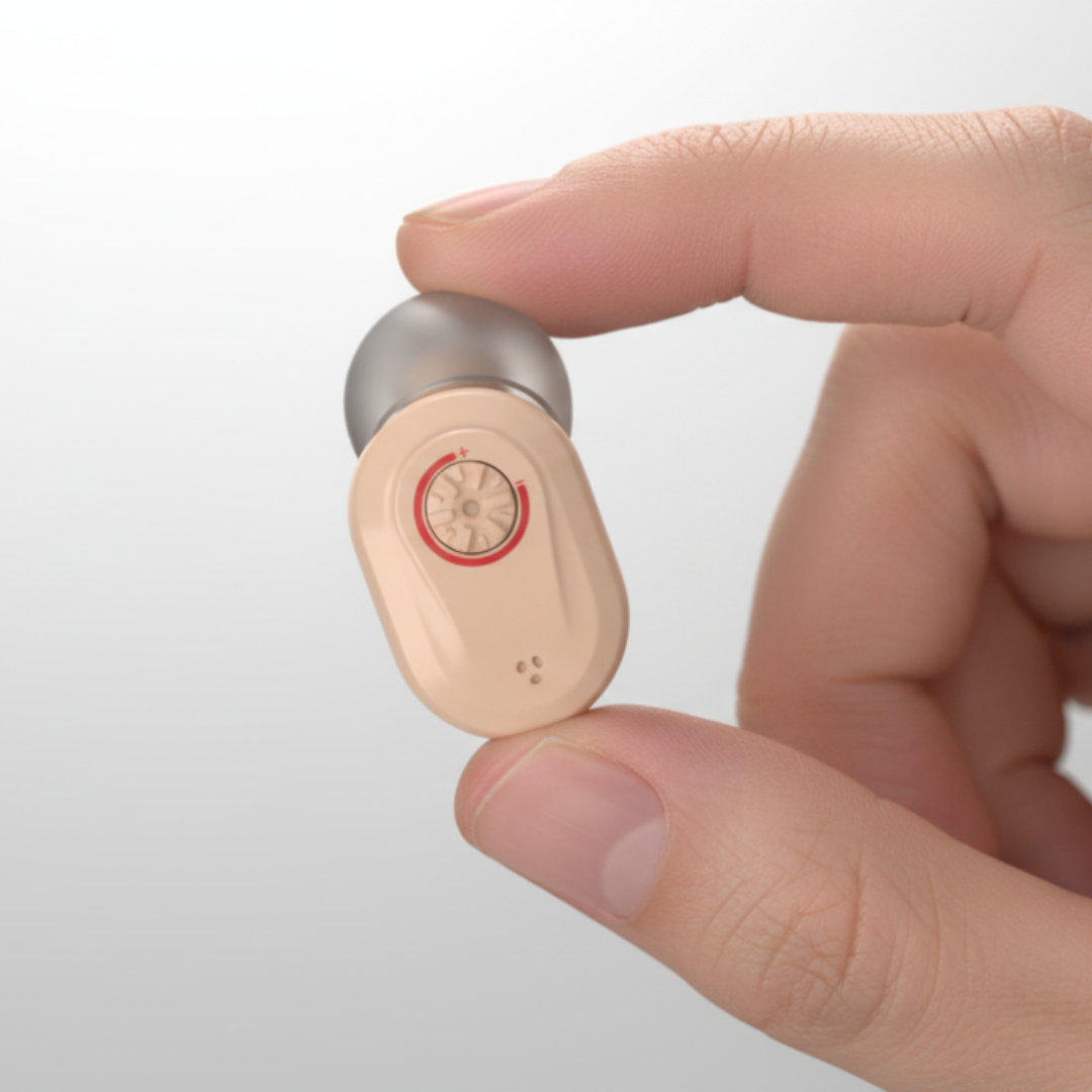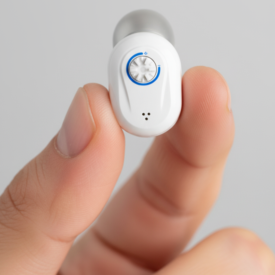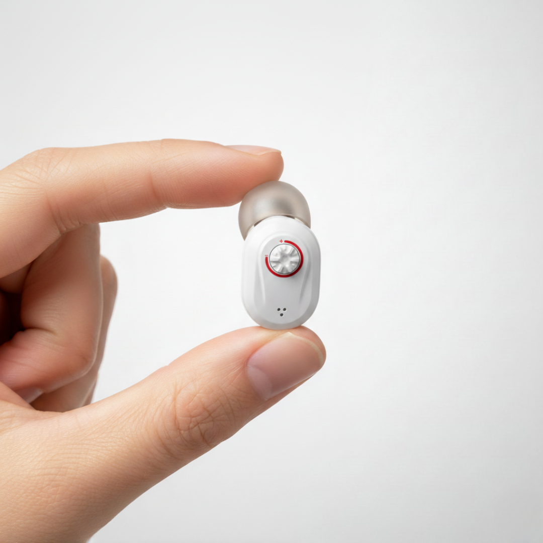 Not at all. Evoke Pro is designed to look exactly like modern wireless earbuds - the same style millions of people wear every day for music and calls. The sleek, compact design sits naturally in your ear without any visible wires or bulky components behind your ear. Most people will assume you're simply listening to music or taking a call, giving you complete discretion about your hearing needs.