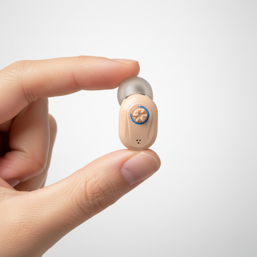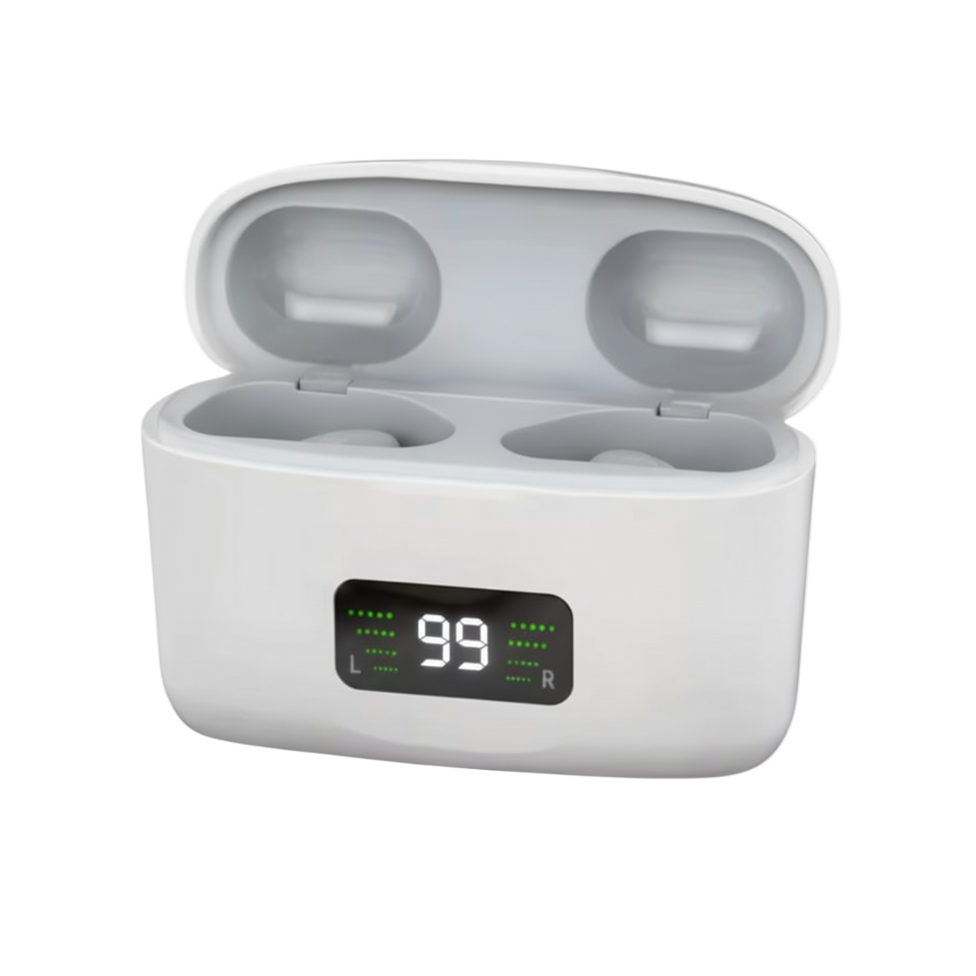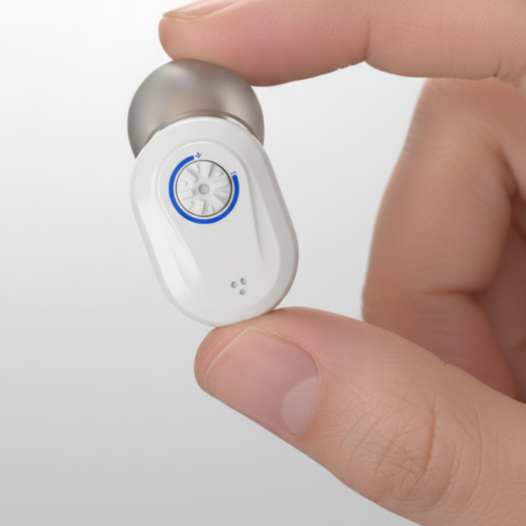 Not at all. Evoke Pro is designed to look exactly like modern wireless earbuds - the same style millions of people wear every day for music and calls. The sleek, compact design sits naturally in your ear without any visible wires or bulky components behind your ear. Most people will assume you're simply listening to music or taking a call, giving you complete discretion about your hearing needs.